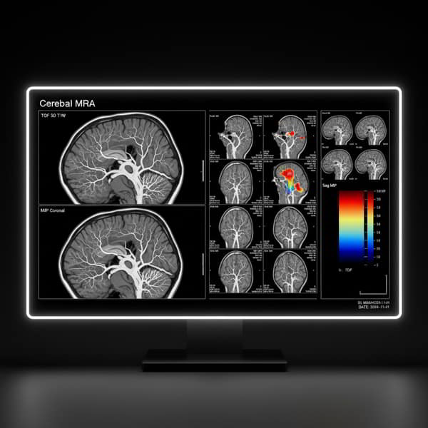 La angiorresonancia cerebral (MRA) es una RM vascular que muestra flujo sanguíneo en arterias y venas. La técnica TOF sin contraste resalta sangre en movimiento; la MRA con gadolinio mejora señal y cobertura en escenarios complejos.