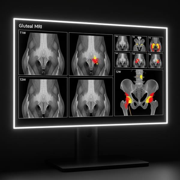 La resonancia magnética de glúteos es un estudio sin radiación ionizante que caracteriza músculos, fascia, tejido subcutáneo y piel, además de revisar la relación con nervio ciático y bursa trocantérica. El objetivo es detectar lesiones musculares y complicaciones inflamatorias, infecciosas o asociadas a materiales de relleno previos.